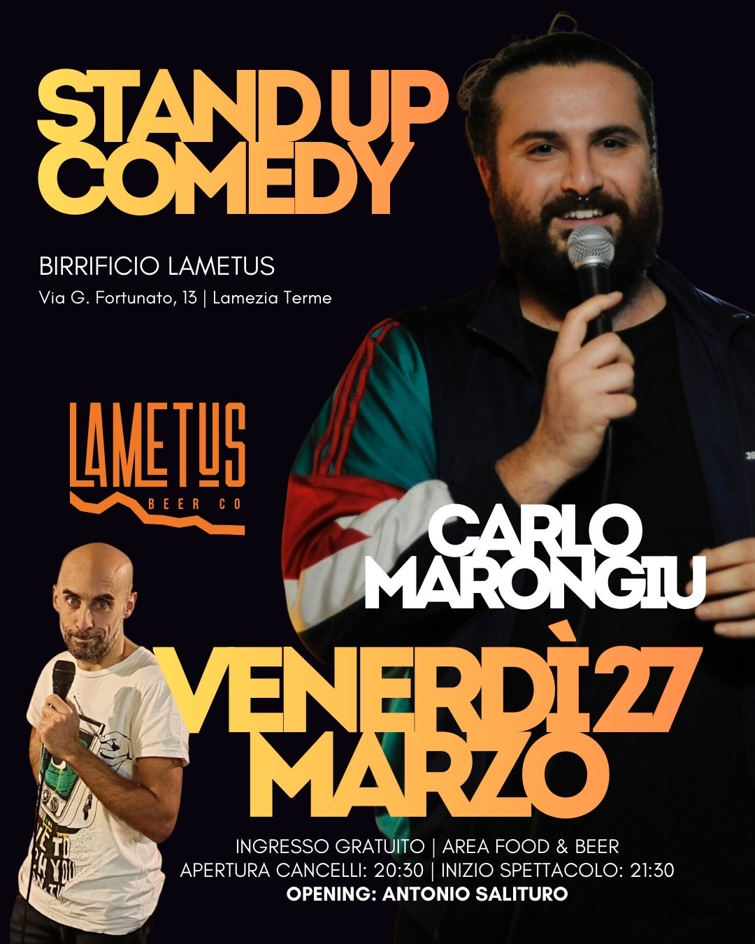 Venerdì 27 marzo il Birrificio Lametus diventa palco di stand up comedy: una serata diversa dal solito, da vivere tutta d’un fiato tra battute, pubblico e le nostre birrette.