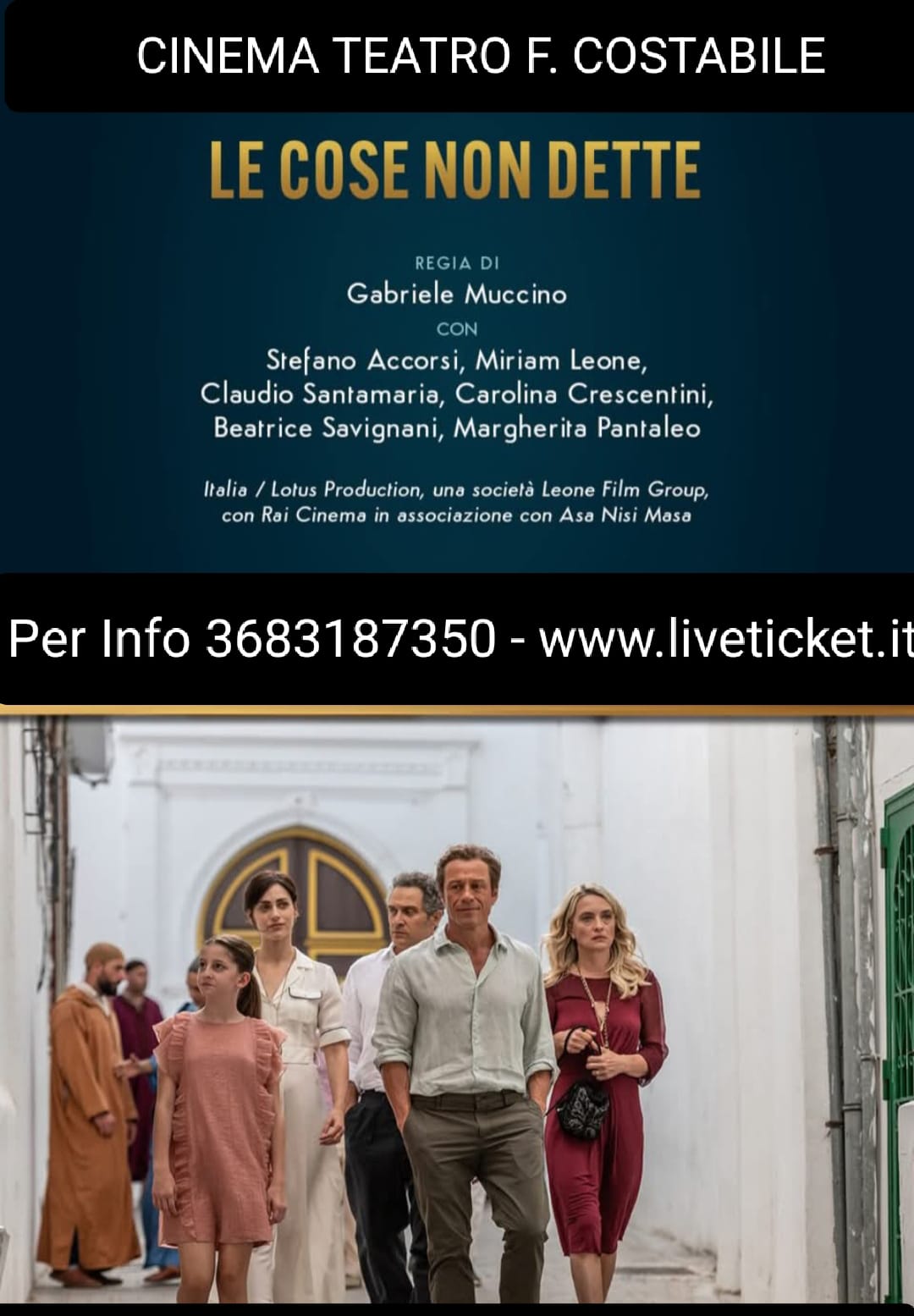 Proiezione del film " Le cose non dette " di Gabriele Muccino con Stafano Accorsi, Miriam Leone, Claudio Santamaria, Carolina Crescentini dal 29 gennaio al 4 febbraio.