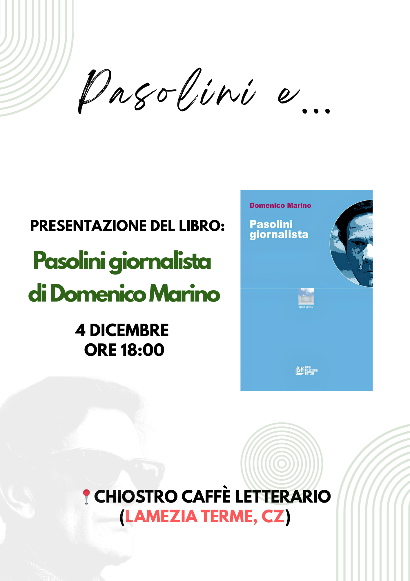 Incontro condotto dal Prof. Carlo Fanelli in dialogo con l'autore Domenico Marino, per un'analisi approfondita del ruolo cruciale di Pasolini come intellettuale civile e giornalista.