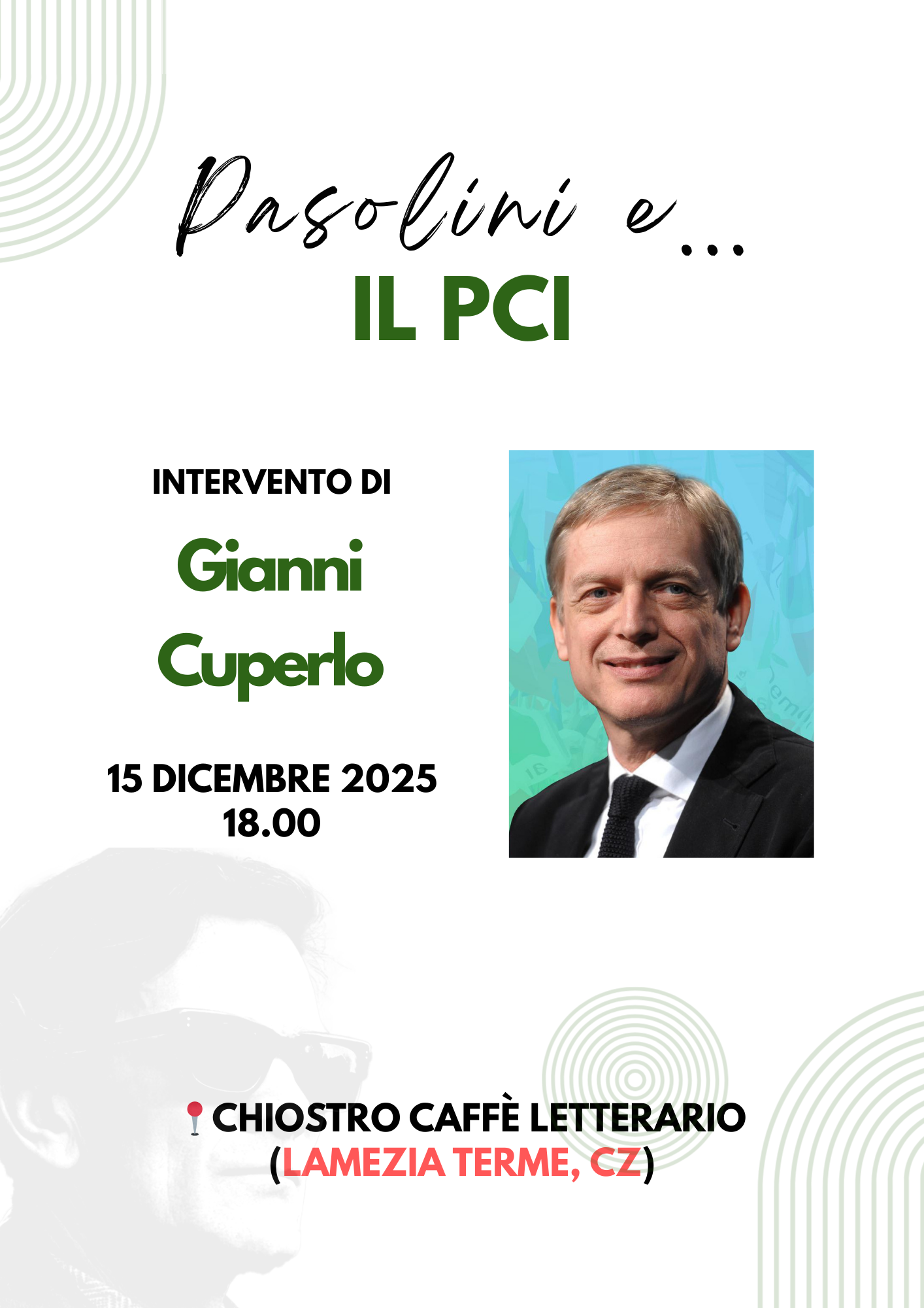 Interverrà Gianni Cuperlo, politico e saggista noto per le sue analisi sulla sinistra italiana, che discuterà la posizione critica e dialettica di Pasolini nei confronti del Partito.