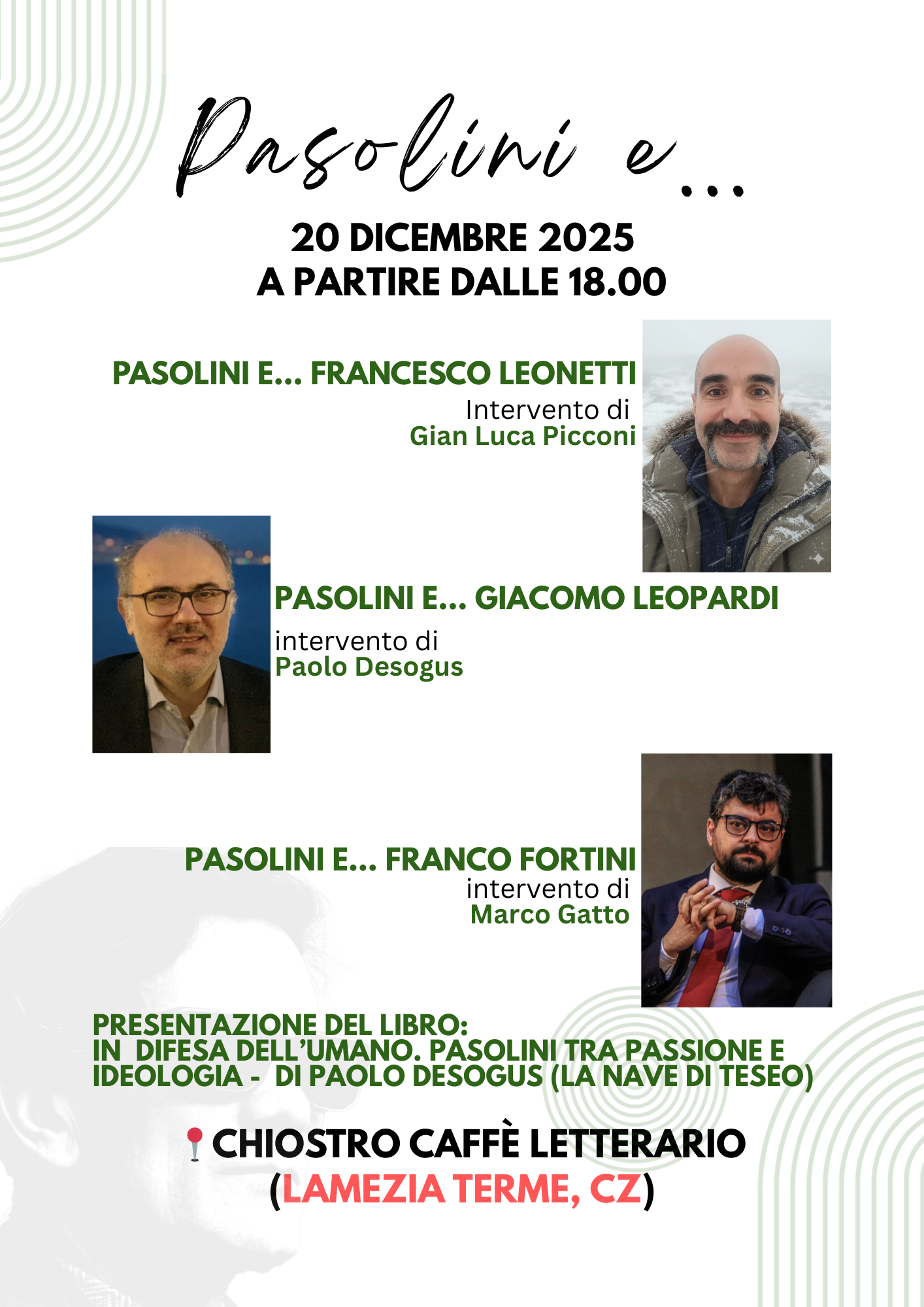 Pasolini e... GIACOMO LEOPARDI: Intervento di Paolo Desogus sul legame intellettuale tra Pasolini e Leopardi, accomunati da una critica radicale alla modernità e da una profonda sensibilità per gli emarginati.